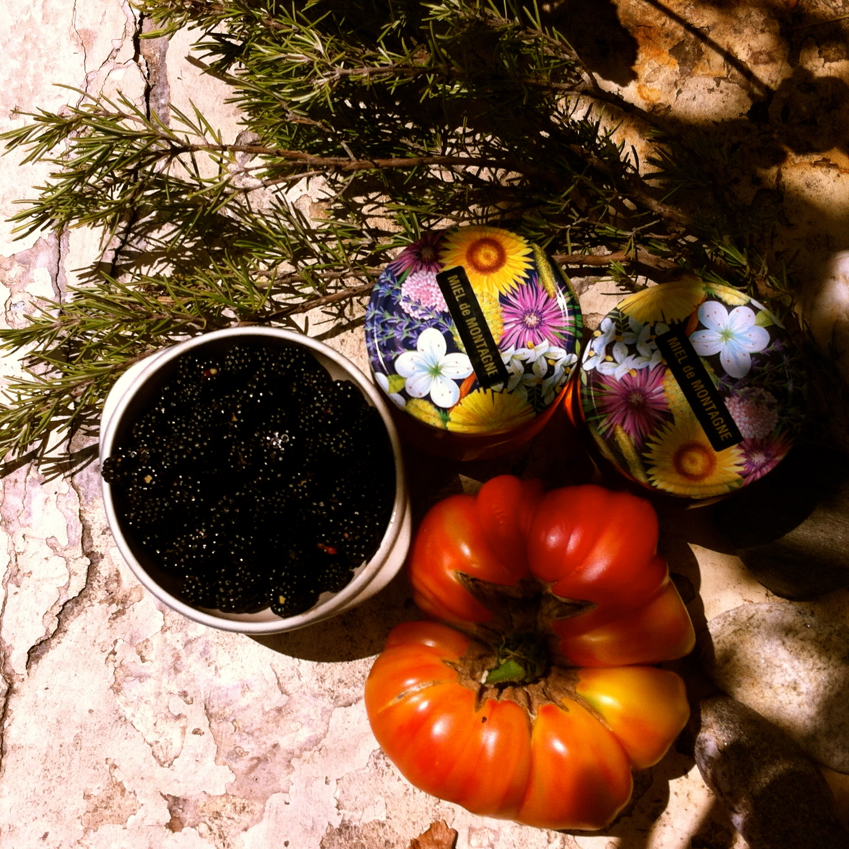 Uncategorized today’s harvest of acknowledgement Posted by sarahdomogala on July 30, 2014 Thank you so much pachamama! Beautiful evening sky on the road home from Treilles. Wild berries and rosemary, a beautiful dramatic tomato and honey from the neighbours. Related